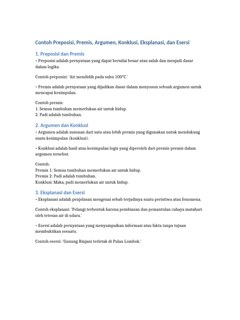 Contoh Preposisi Premis Argumen Konklusi Eksplanasi Esersi 2 | PDF
