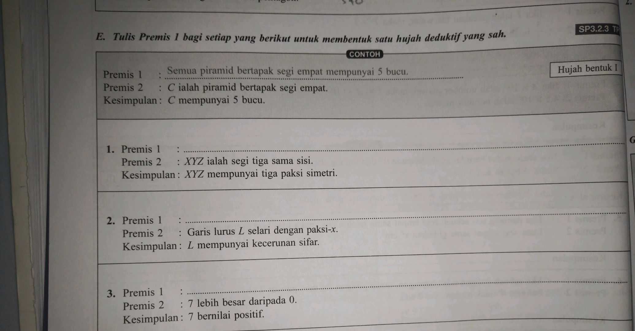 E. Tulis Premis 1 bagi setiap yang berikut | StudyX