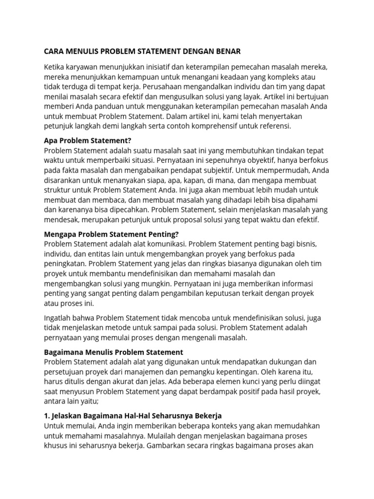 Contoh Elemen Problem Statement | PDF