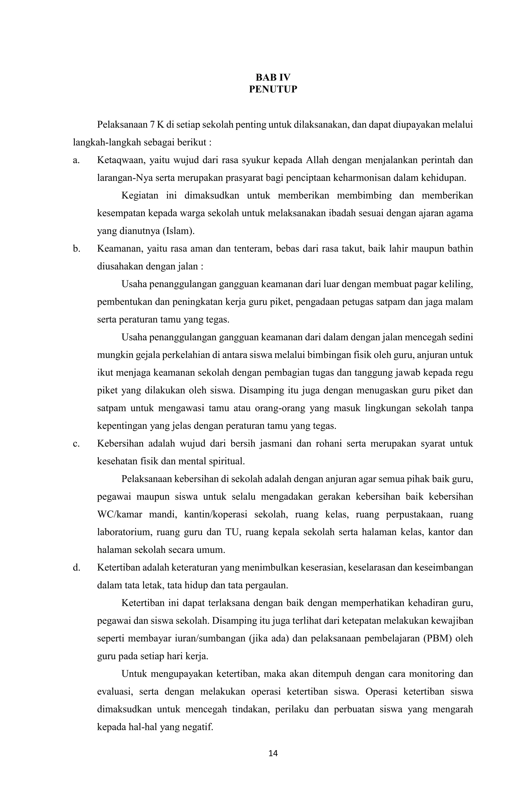 Konsep Program Kerja 7K | PDF