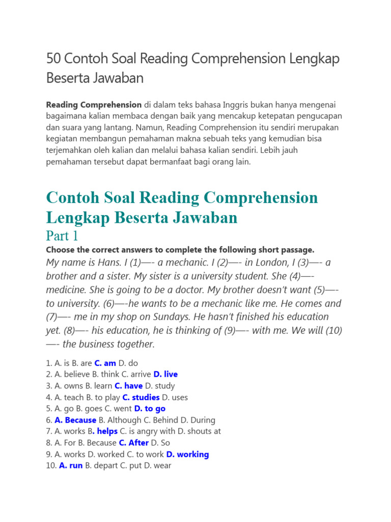 50 Contoh Soal Reading Comprehension Lengkap Beserta Jawaban | PDF ...