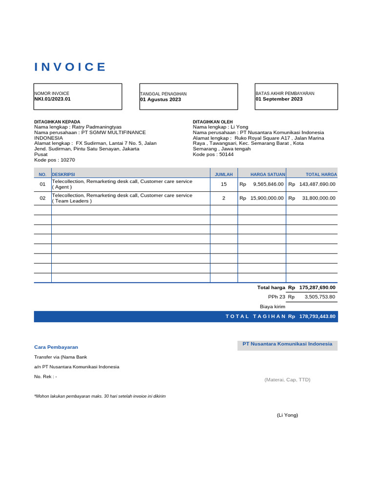 Contoh Invoice Perusahaan - Perumperindo.co.id