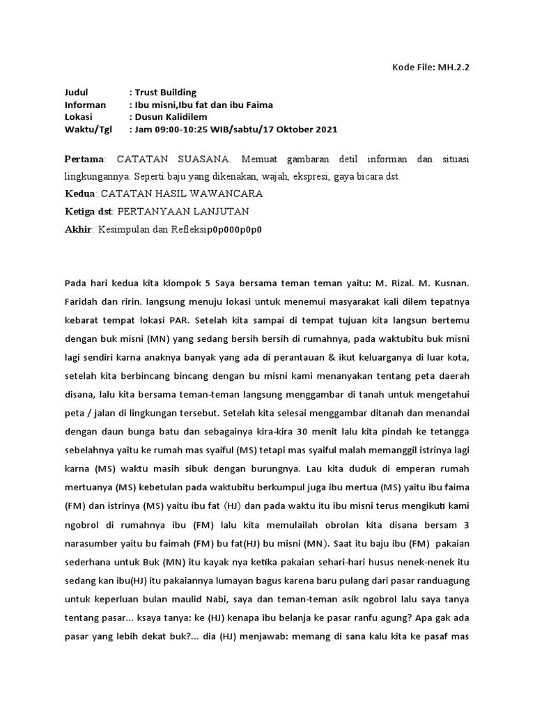 Contoh Field Note (Catatan Lapangan) KKN | PDF