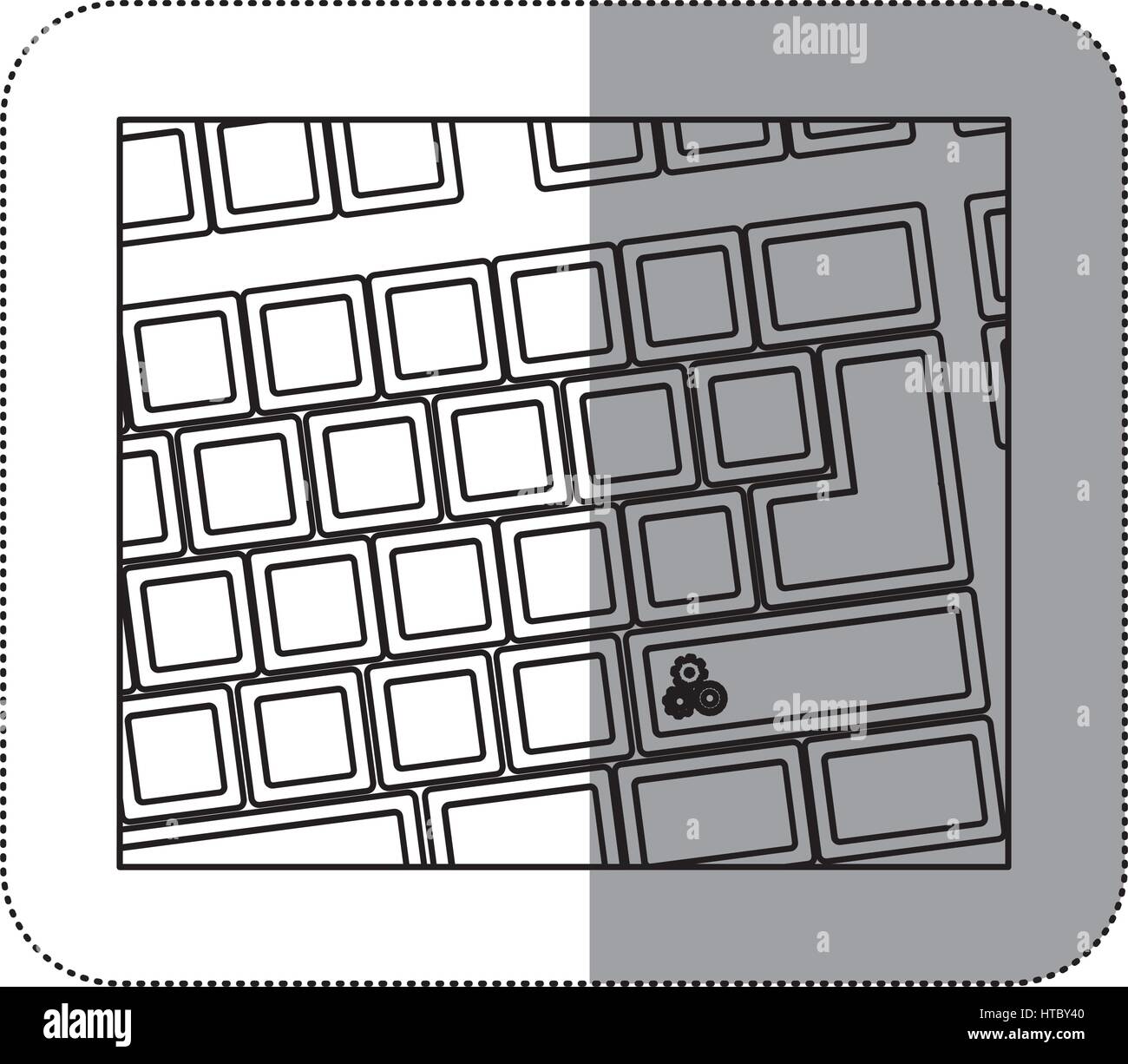 contour computer keyboard with gear symbol icon, vector illustraction ...
