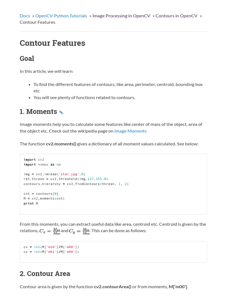 Contour Features - OpenCV-Python Tutorials 1 Documentation | PDF | Area ...