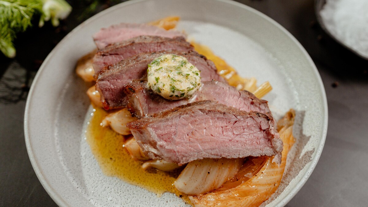 Contre-filet de boeuf grillé au sel de céleri et beurre de basilic | Metro