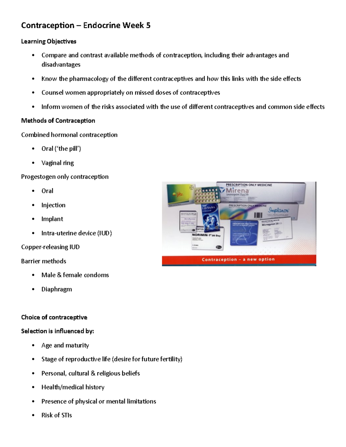 Endocrine Week 5 Contraception Summary - Contracep*on – Endocrine Week ...