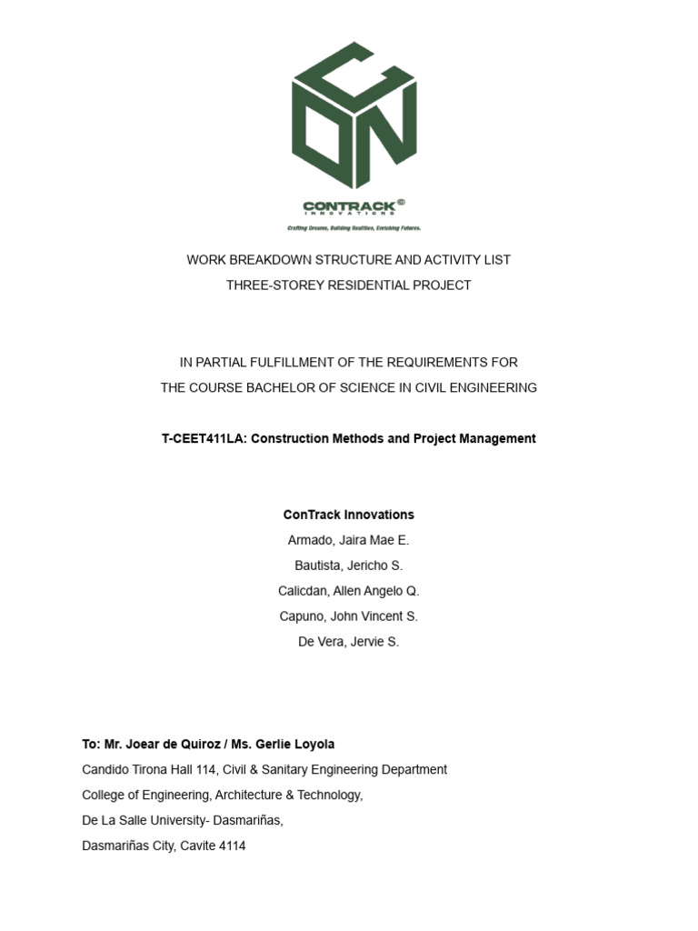 T CEET411LA - ConTrack Innovations - Work Breakdown Structure and ...