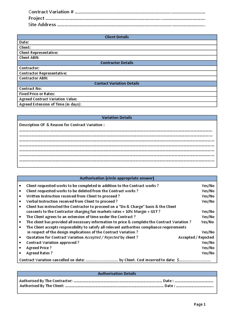 Construction Contract Variation Form PDF | PDF | General Contractor ...