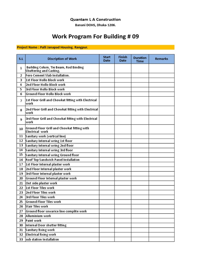 Work Program For Building # 09: Quantam L A Construction | PDF