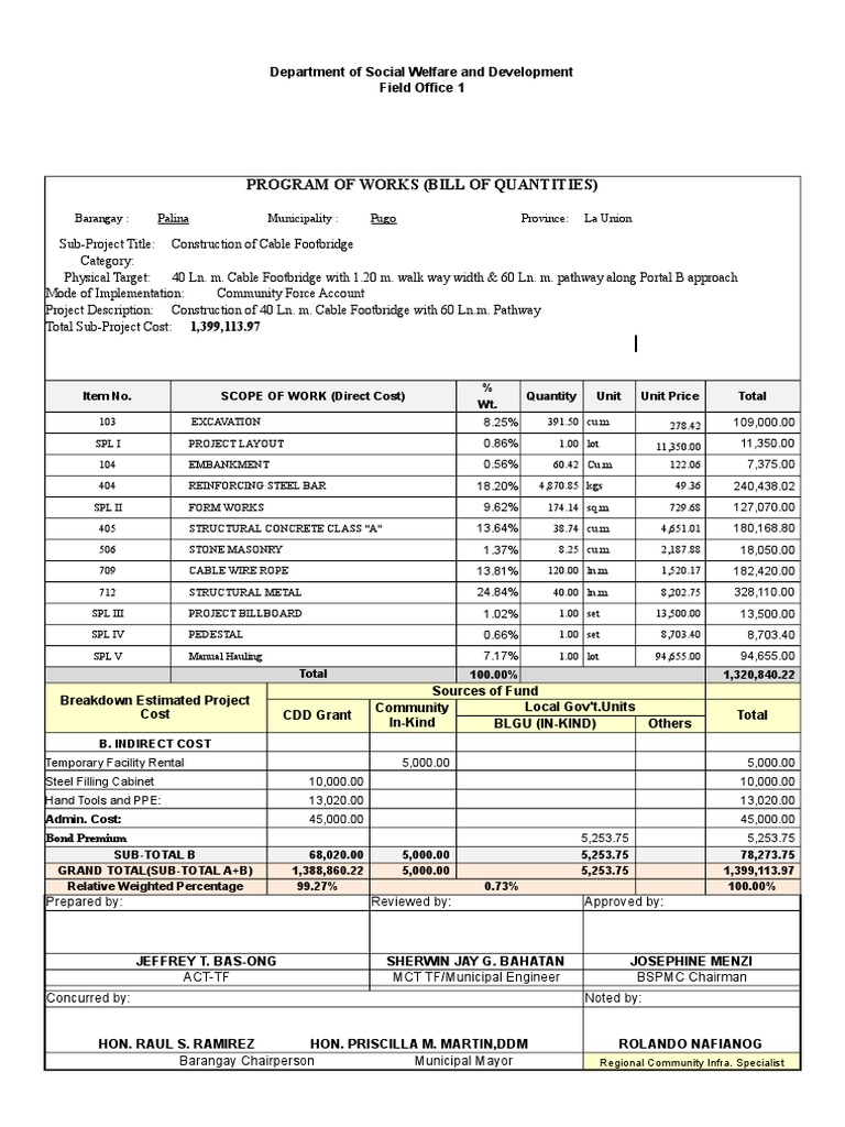 Program of Works Sample | PDF | Drainage | Road Surface