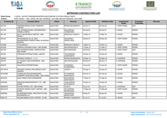 Here is a list -ADWEA_APPROVED_CONTRACTORS_LIST.pdf