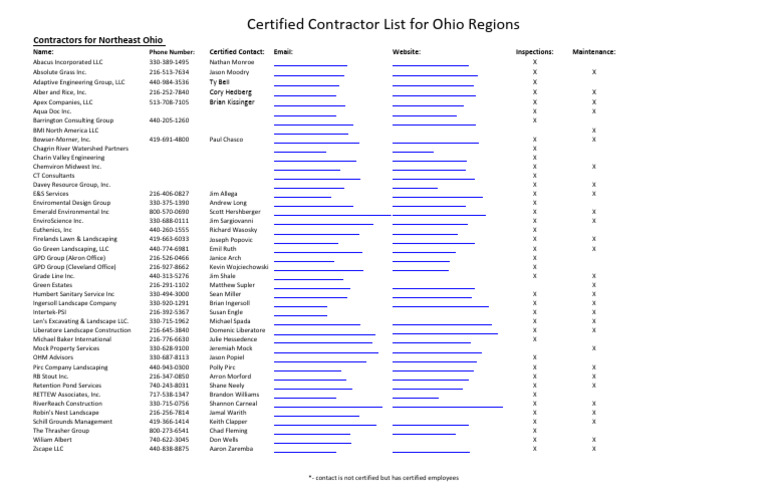 O and M Certified Contractor List-Pages-1 | PDF