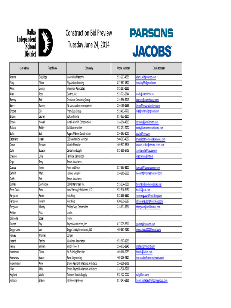 Construction Contacts Directory | PDF