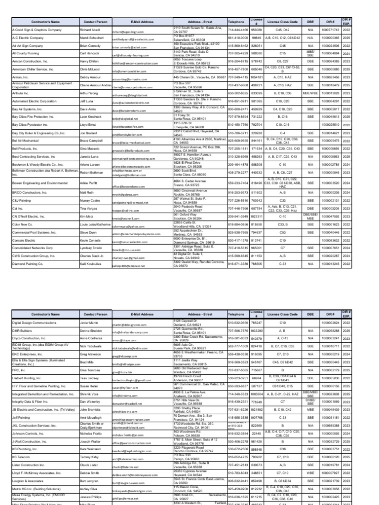 Cvusd C-10 Cupccaa Contractor List | PDF | Building Engineering ...