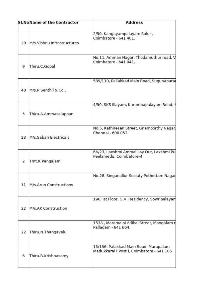 Coimbatore Registered Contractors List | PDF