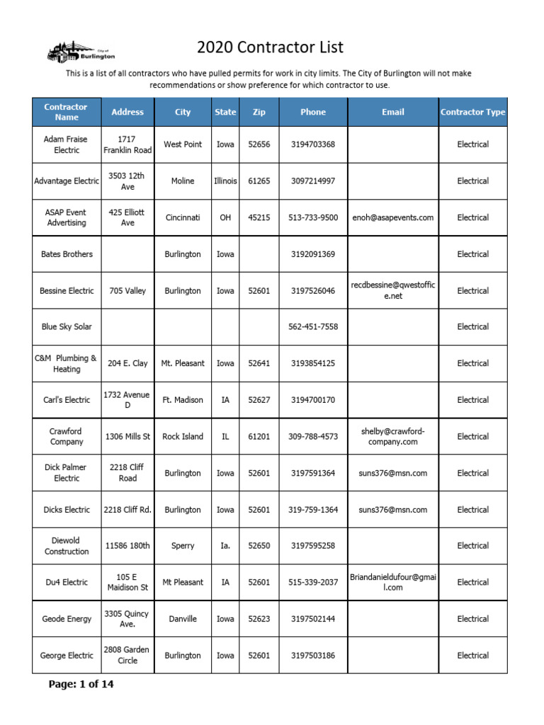 Contractor List Info | PDF