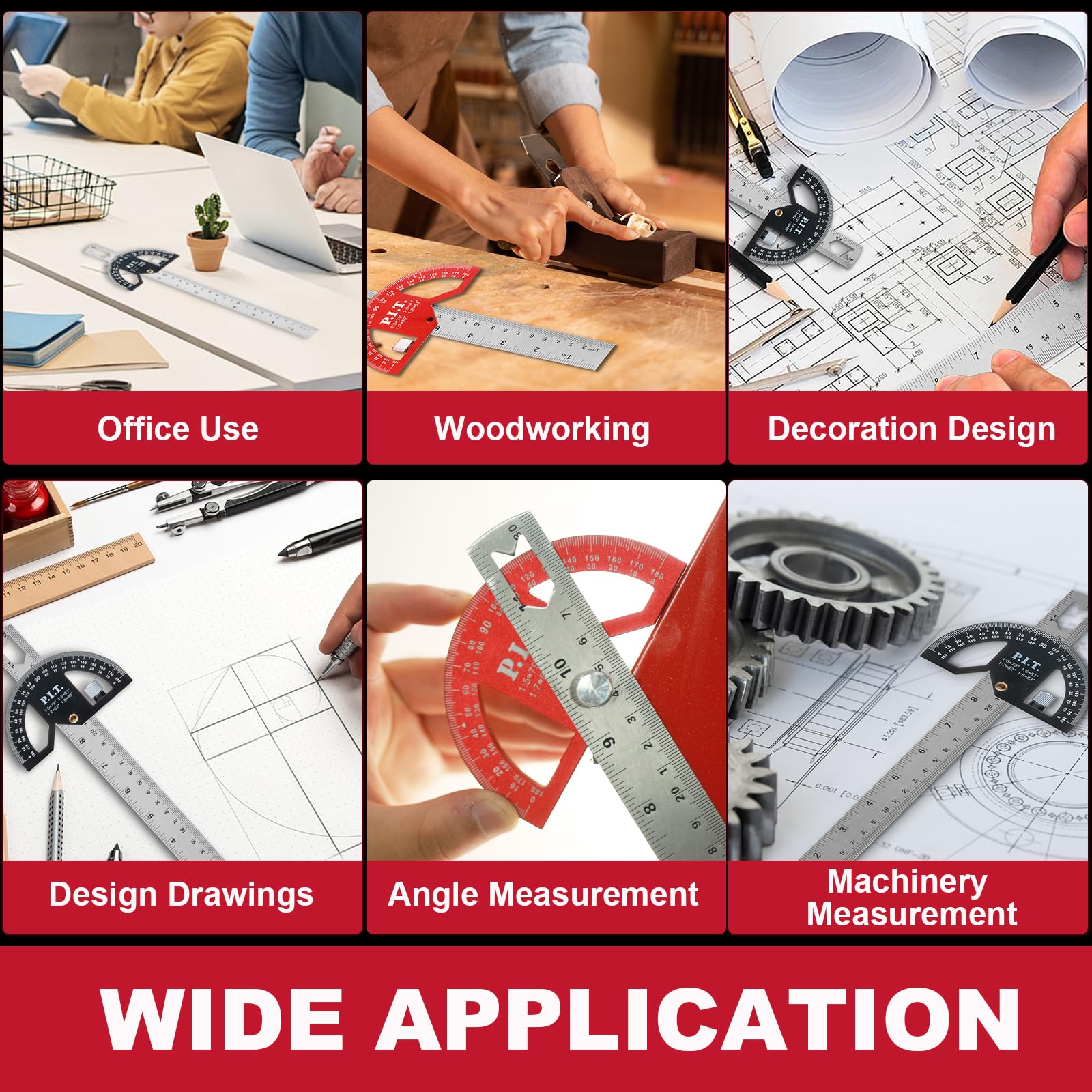 P.I.T. Angle Protractor Square 12 Inch, Adjustable Construction ...