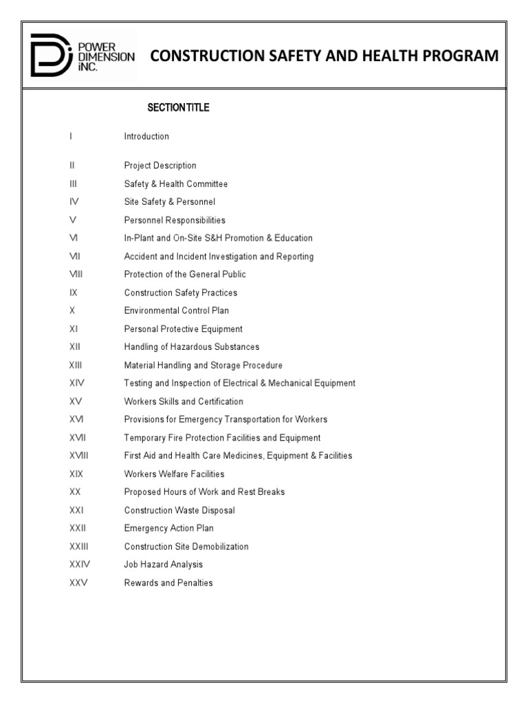 Construction Contractor Health and Safety Manual Plan Program Policy ...