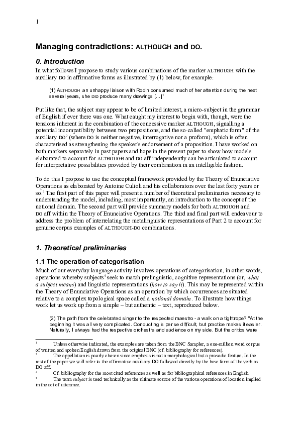 (PDF) Managing contradictions: ALTHOUGH and DO. 0. Introduction