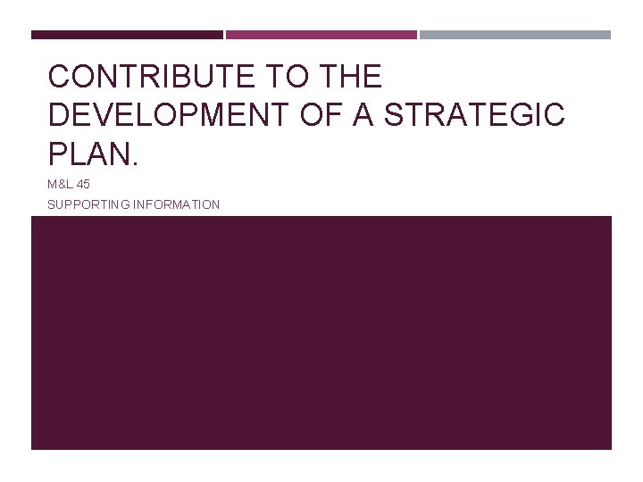 CONTRIBUTE TO THE DEVELOPMENT OF A STRATEGIC PLAN