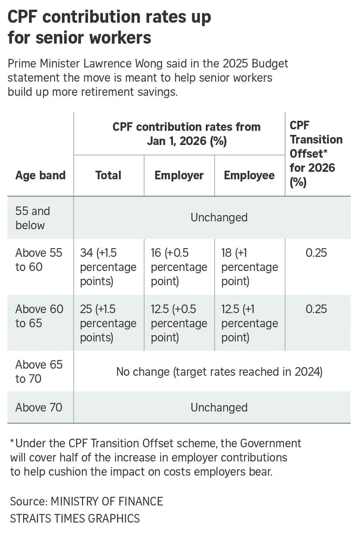 Budget 2025: CPF contribution rate for older workers to increase by 1.5 ...
