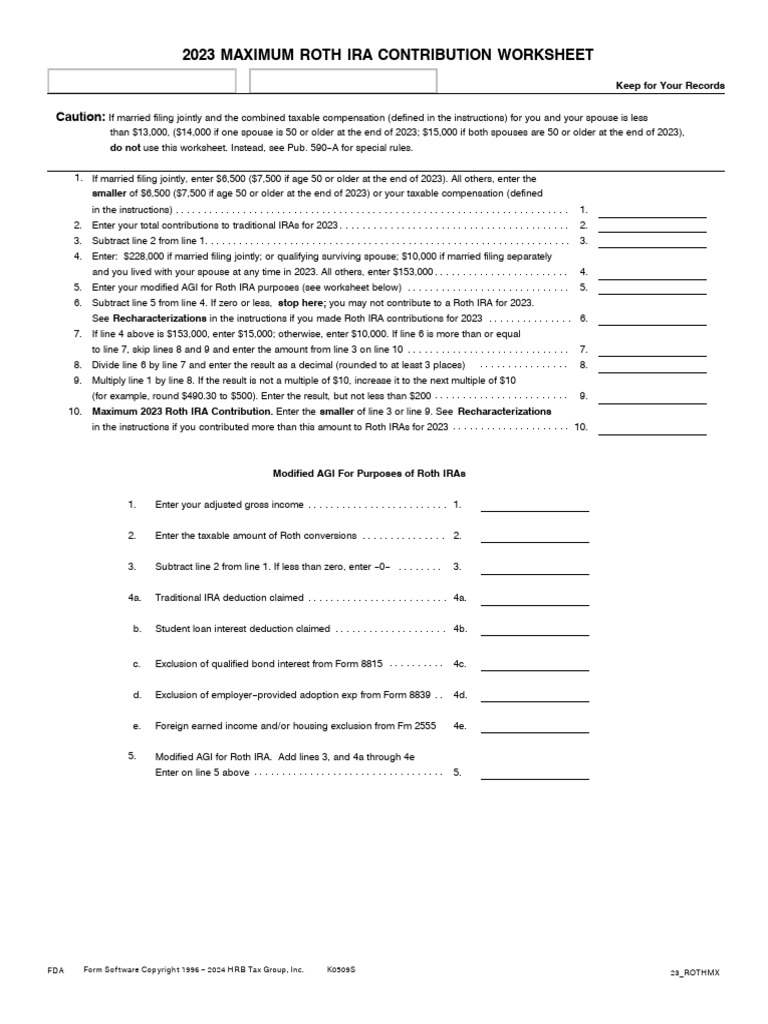 2023 Maximum Roth IRA Contribution Worksheet | PDF | Individual ...