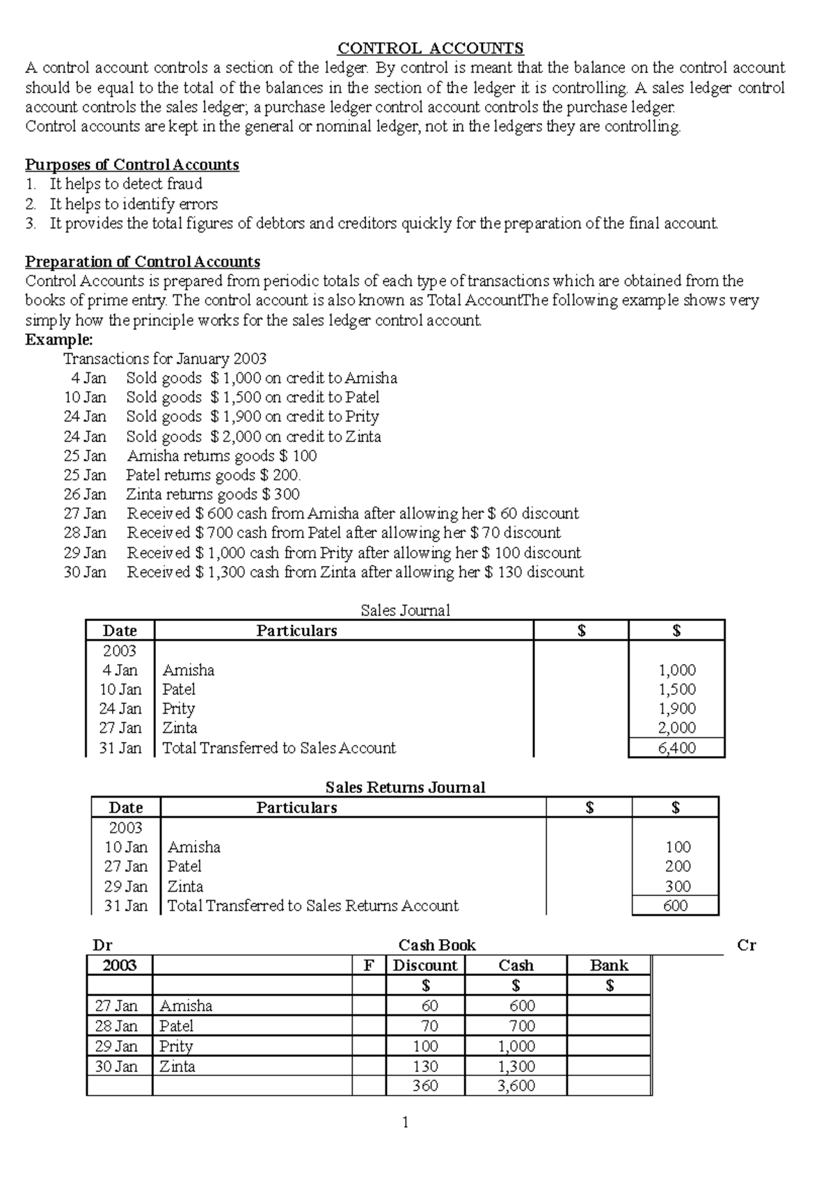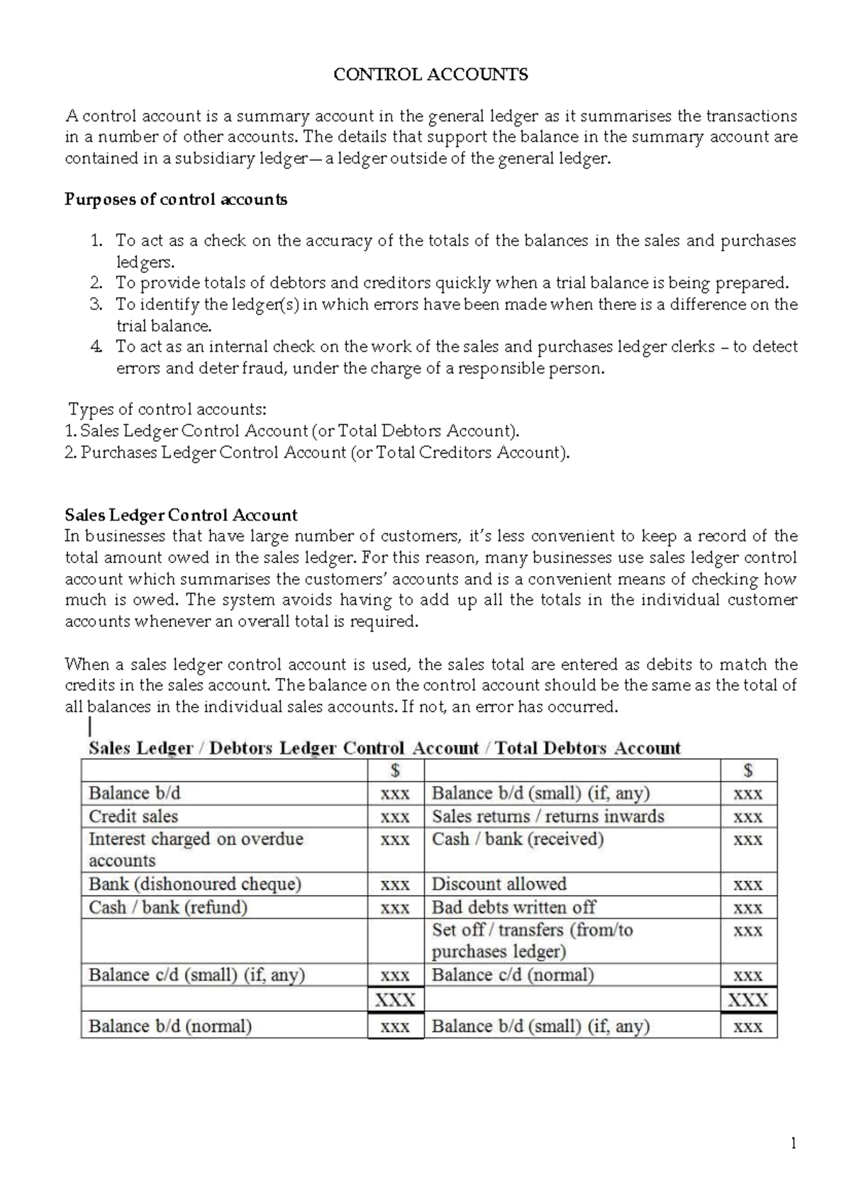 Chap1 Control Accounts - 1 What is a control account? - A summary ...