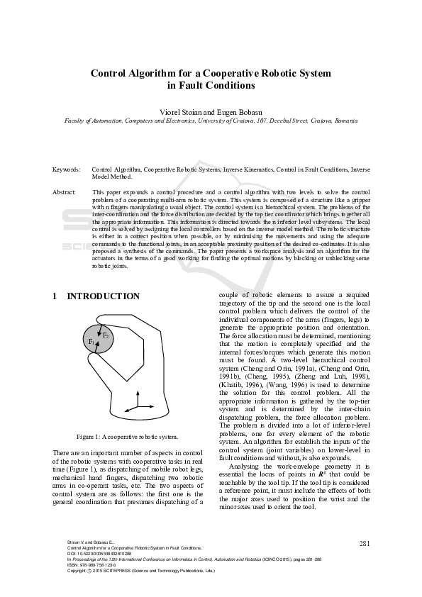 (PDF) Control Algorithm for a Cooperative Robotic System in Fault ...