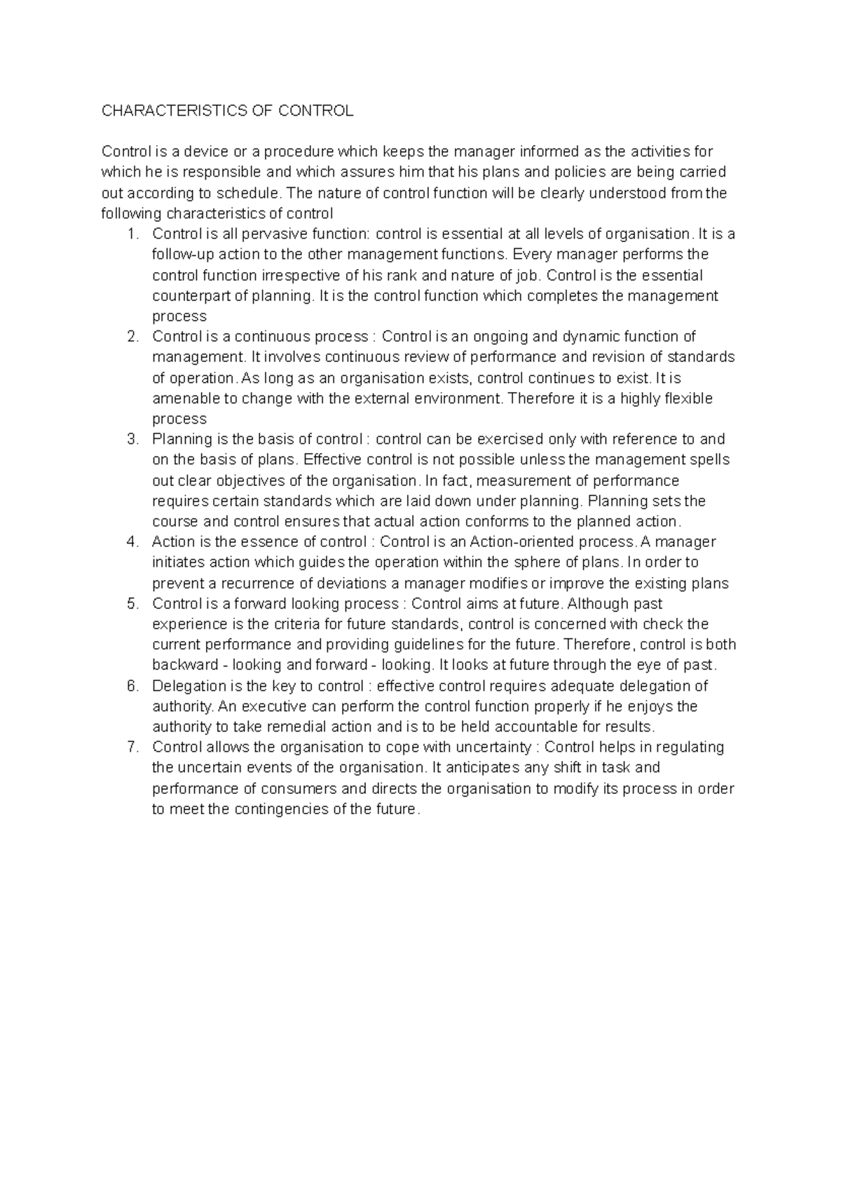 Characteristics OF Control - CHARACTERISTICS OF CONTROL Control is a ...