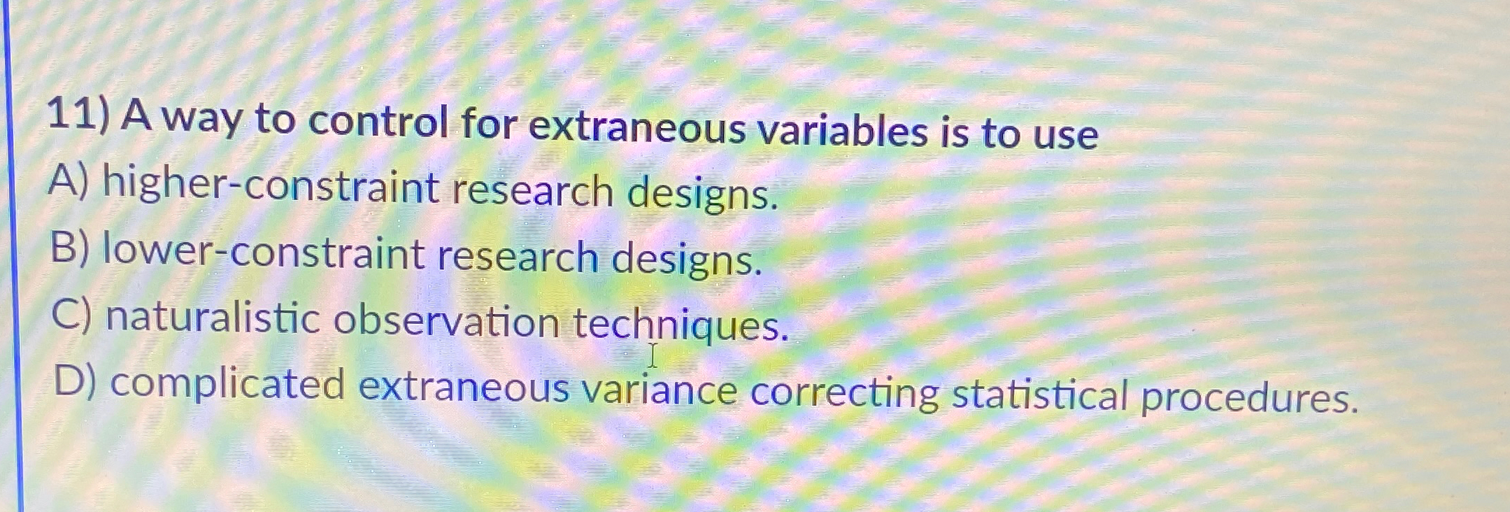 Solved A way to control for extraneous variables is to useA) | Chegg.com