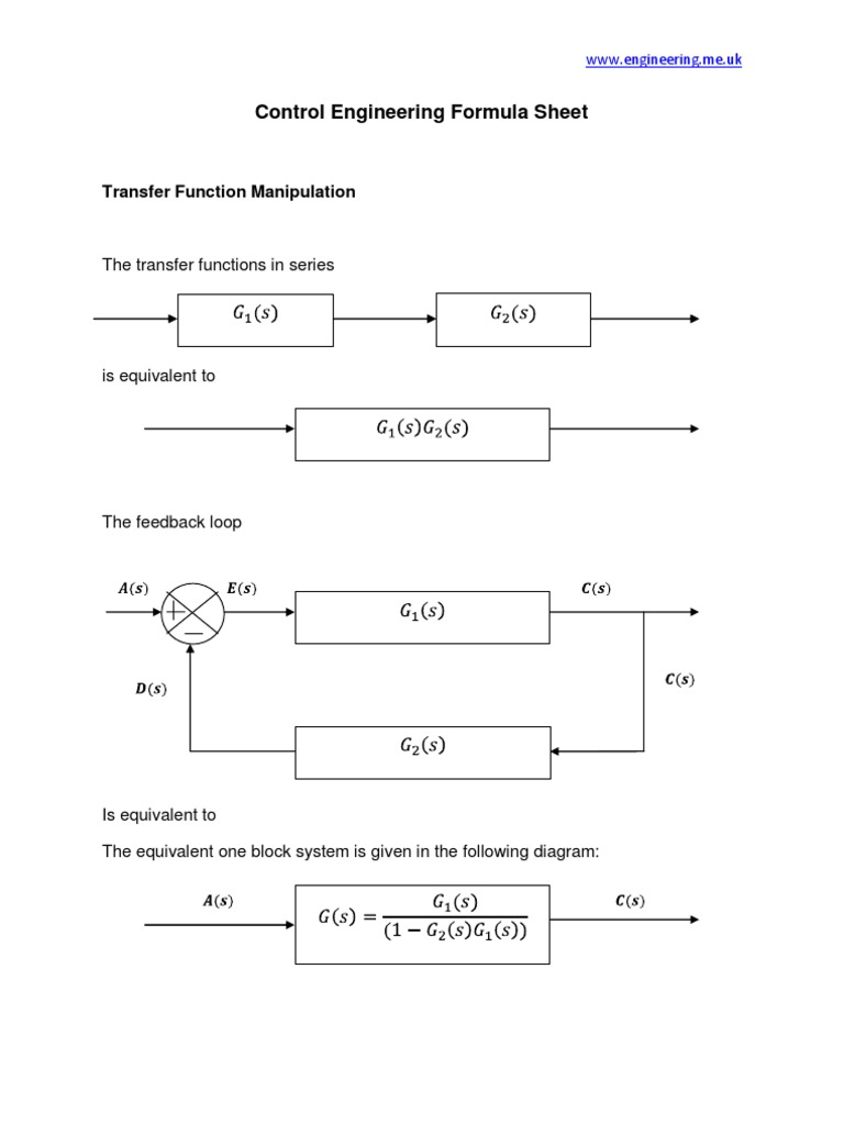 Control Engineering Formula Sheet | PDF
