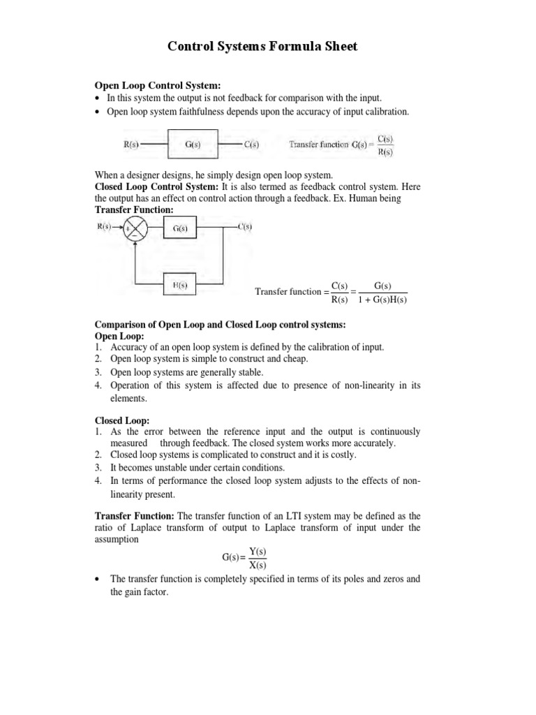 Control Systems Formula Sheet: A Comprehensive Guide to Open Loop and ...