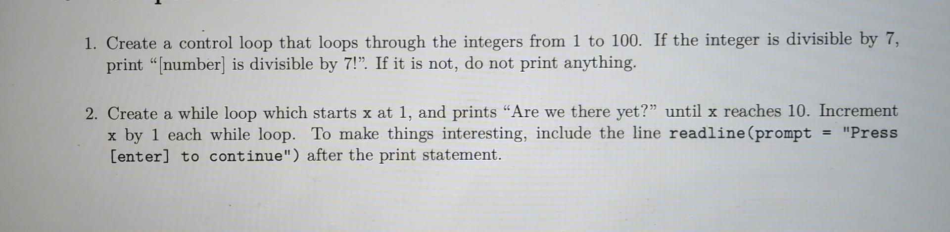 Solved 1. Create a control loop that loops through the | Chegg.com