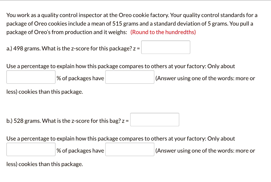SOLVED: You work as a quality control inspector at the Oreo cookie ...