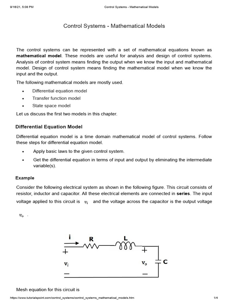 Mathematical Modelling in Control System | PDF | Teaching Methods ...