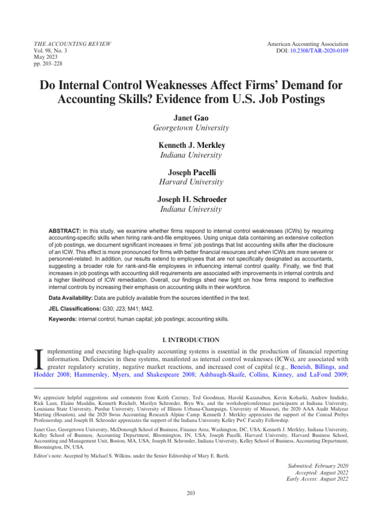 (PDF) Internal Control Weakness, Investment and Firm Valuation