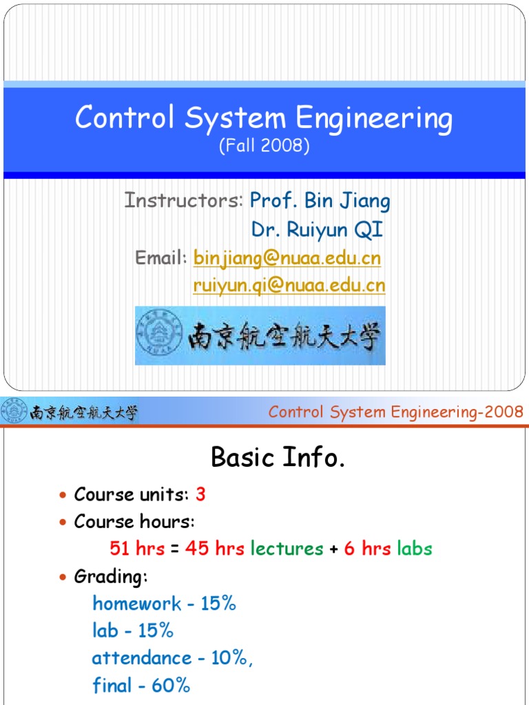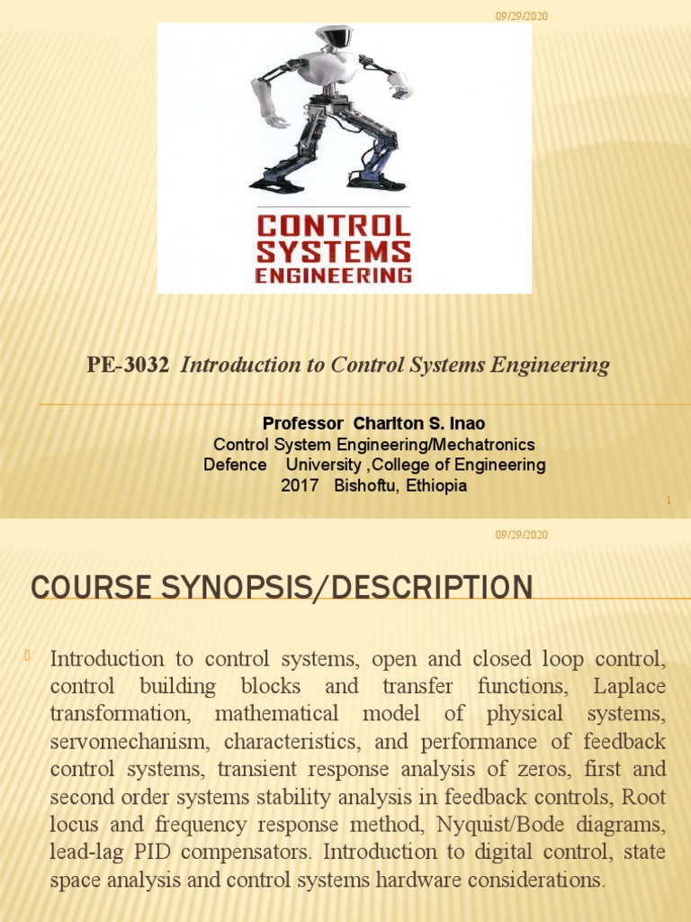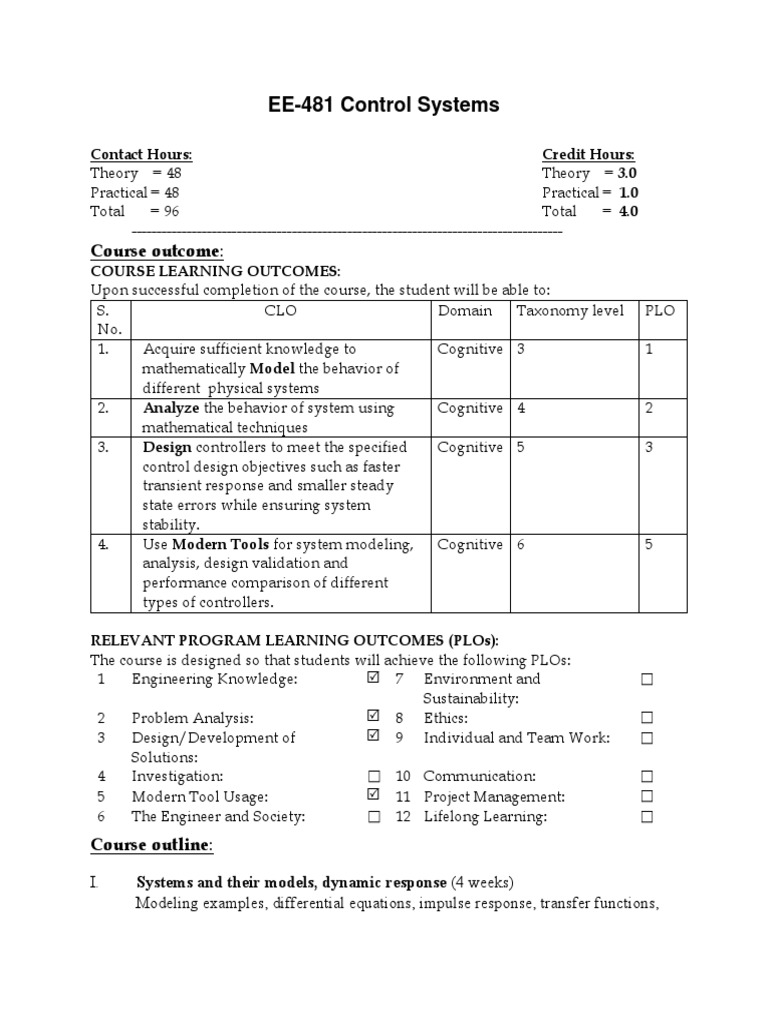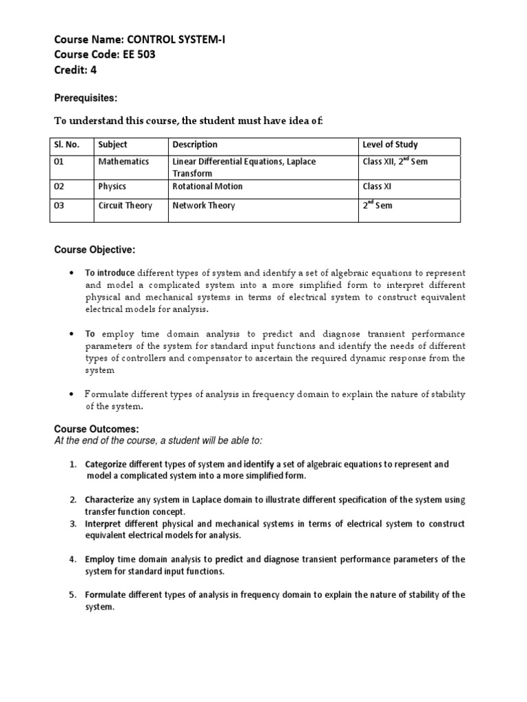 Introduction to Control Systems Engineering Course Syllabus | PDF ...