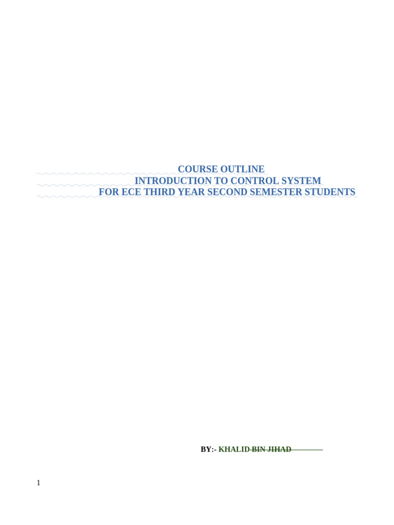 Control System 1 Course Outline and Lesson Plan - Course Outline and ...