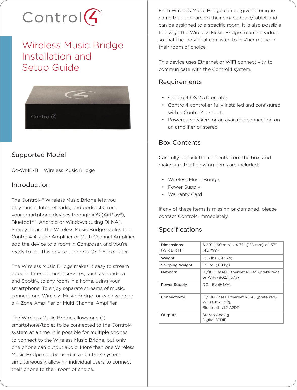 Control4 C4WMB C4-WMB-B User Manual R33C4WMB Install Guide