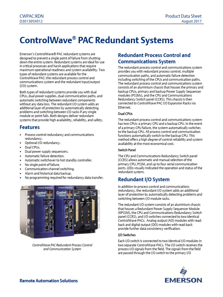 EMERSON BRISTOL CONTROLWAVE PAC REDUNDANCY PRODUCT OVERVIEW Pdf ...
