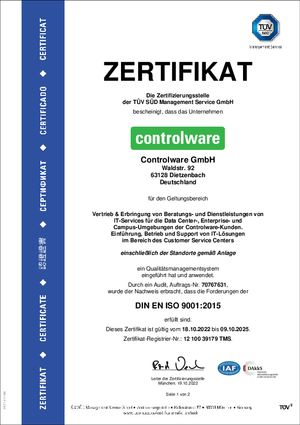 [Translate to English:] Controlware Zertifizierungen - Controlware