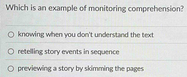 Solved: Which is an example of monitoring comprehension? knowing when ...