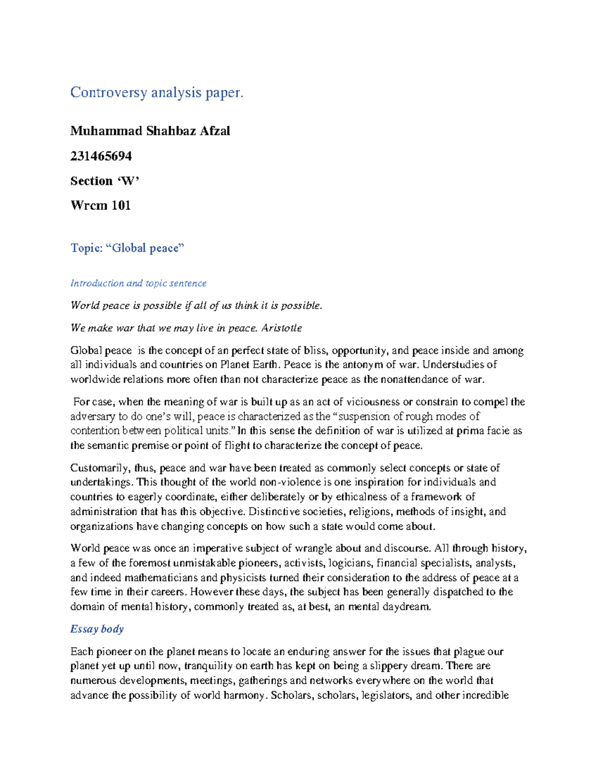 Wrc final controversy paper - Controversy analysis paper. Muhammad ...