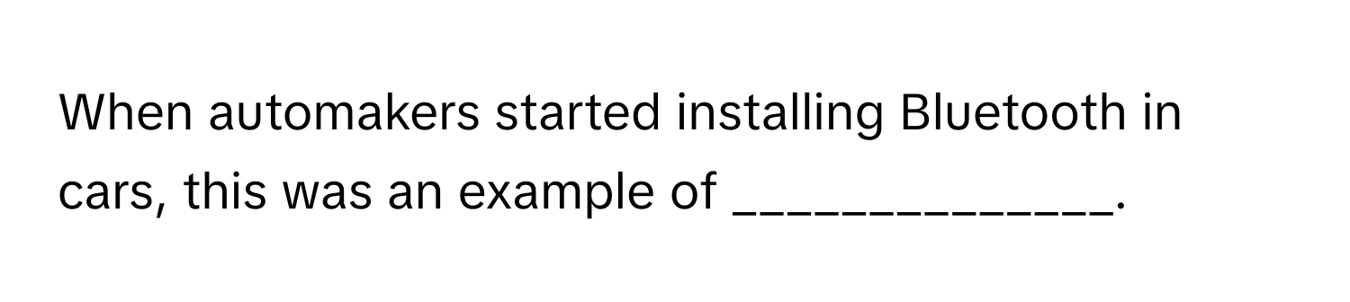 Solved: When automakers started installing Bluetooth in cars, this was ...