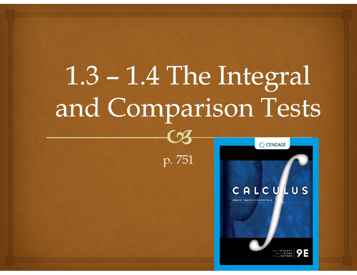 1.3-1.6 Integral & Comparison Tests: Convergence Methods - Studocu