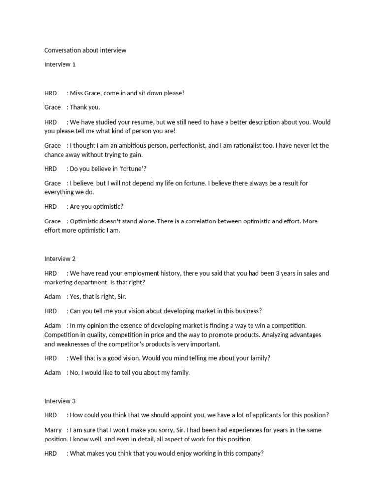 Dialogue between interviewer and interviewee/ Job Interview ...