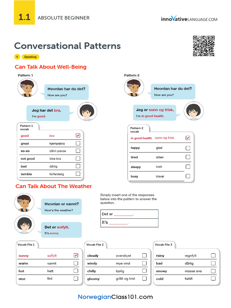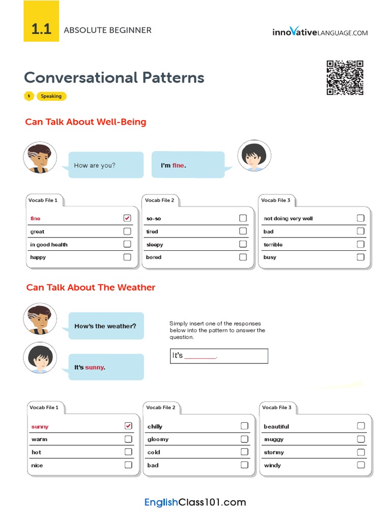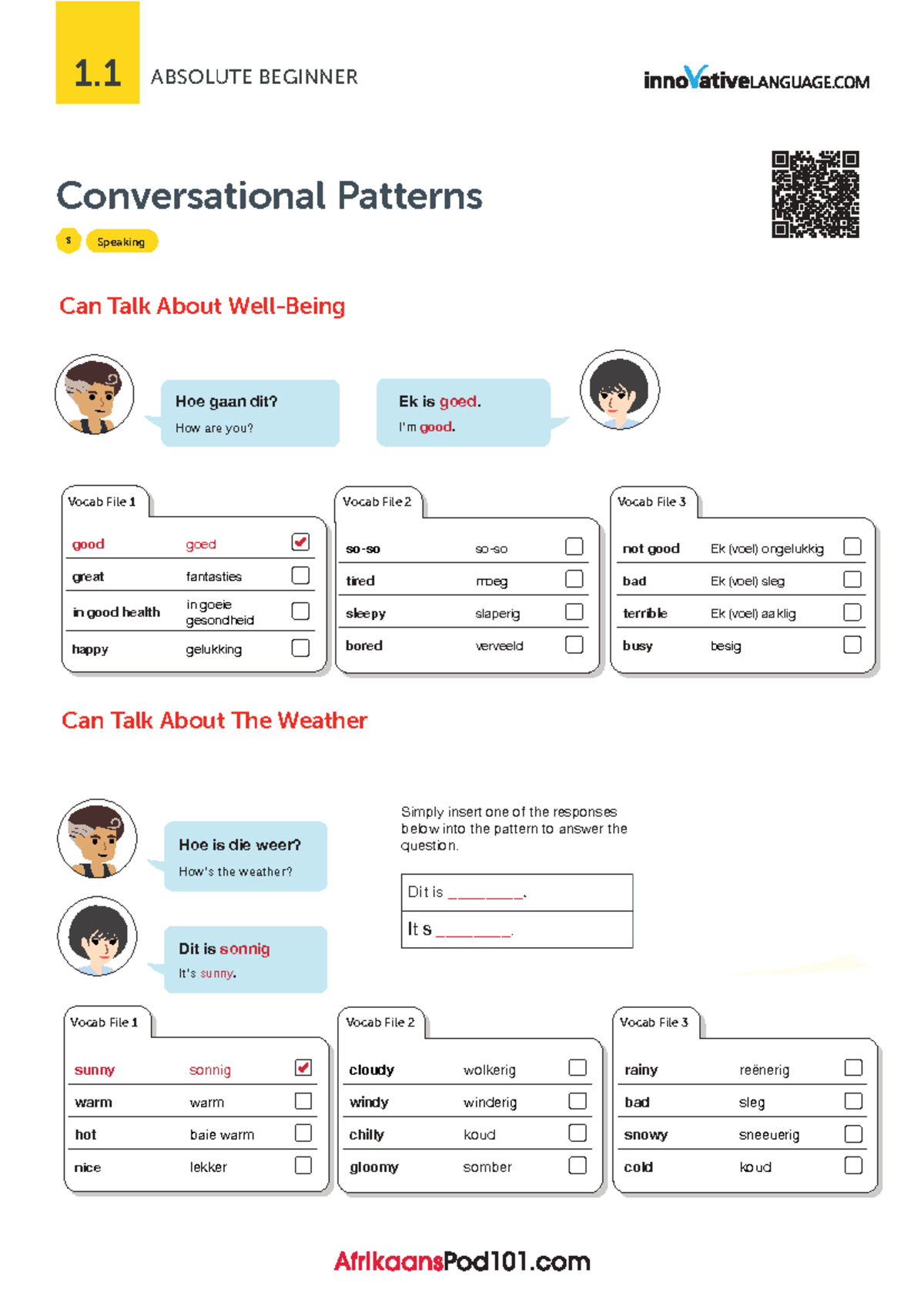 Conversational Patterns for Beginners: Well-Being & Weather - Studocu