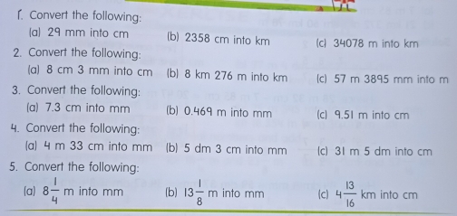 Solved: Convert the following: a 29 mm into cm (b) 2358 cm into km (c ...