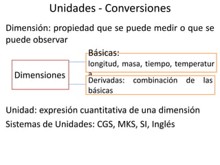 Unidades y conversiones - UNIDADES Y CONVERSIONES UNIDADES Y ...